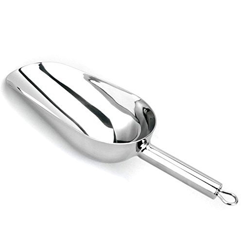 - This thickened stainless steel scoop is perfect for scooping ice, coffee beans, flour, and other bulk ingredients! A smooth handle provides a comfortable grip;
