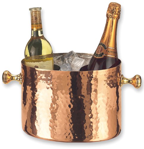 Keep your libations at the perfect temperature with this elegant hammered solid copper 2 bottle chiller. Removable Insert. Lacquered to resist tarnishing.