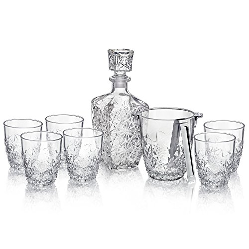 - Bormioli Rocco Dedalo 9-Piece Whiskey Decanter Set, 6 Rocks Glasses,One Whiskey Decanter, Ice Bucket