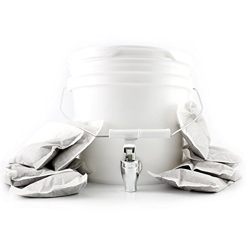 Cold Brew Bucket, At Home One Gallon Cold Brew Coffee Maker, Perfectly Sized Leave in Fridge Decanter with Spout, Includes 1.5Lbs of Coffee Filter Bags The Cold Brew Bucket is quite possibly the easiest to use, easiest to clean, and just flat out awesome cold brew coffee maker on the market. (At least we think so). The perfectly sized one gallon bucket doubles as the cold brew maker, and all you need to do is use the included coffee filter bags, add them to the bucket after filling with water, and wait 12 hours. Remove the filter bags, and what you have left is an amazing one gallon decanter of the best cold brew ready to dispense right off the fridge shelf. No need to do anything else but enjoy your coffee. The bucket size and 12 included 2oz filter bags are designed to give the ability to make cold brew at a cost per serving that's incredibly low! Included in the filter bags is course ground high quality single-origin arabica Colombian coffee in a medium-dark roast specifically ro