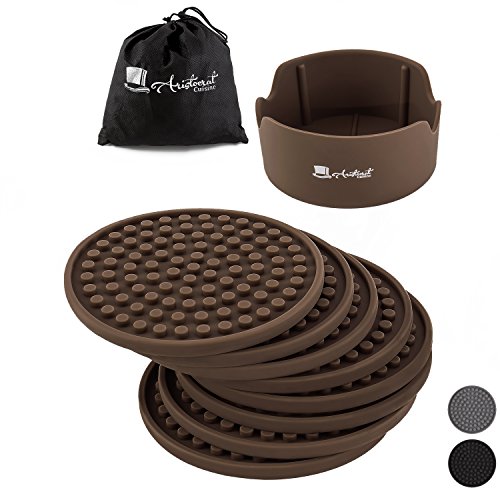 These Aristocrat Cuisine decorative coasters feature a natural ecofriendly silicon construction that absorbs drips and condensation from beverages, protecting your tables and countertops.